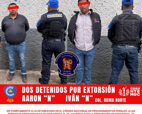 Fueron detenidos en flagrancia a dos personas señaladas por el delito de extorsión, quienes presuntamente se hacían pasar por verificadores del Gobierno de Cuauhtémoc para exigir dinero a encargados de una obra en construcción ubicada en la colonia Roma Norte.