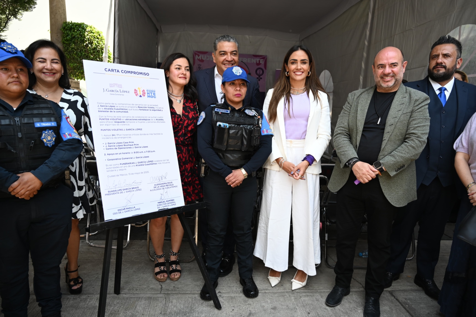 La alcaldesa de Cuauhtémoc Alessandra encabezó la instalación de cuatro nuevos Puntos Violeta en establecimientos de la Agencia Funeraria J. García López, gracias a una alianza con esta empresa que además contempló la capacitación a 65 personas que prestan sus servicios en estos espacios, tres de los cuales operan las 24 horas del día y los siete días de la semana.