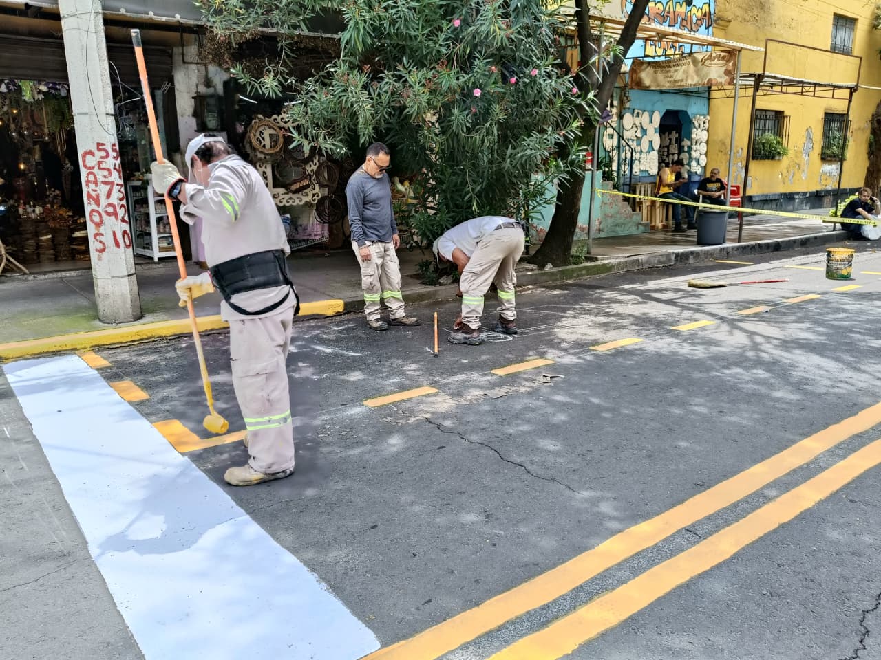 “Estamos en Alcaldía en tus manos en la colonia Maza, visitando a las y los vecinos y de pasada haciendo servicios: tapando baches, plantando arbolitos, haciendo cruces seguros, balizando, recogiendo basura y tocándole a vecinas y vecinos escuchando sus peticiones, sugerencias, quejas”, expresó la alcaldesa al encabezar los trabajos de bacheo y supervisar la poda de árboles en calles como Manuel Payno y Albino García.