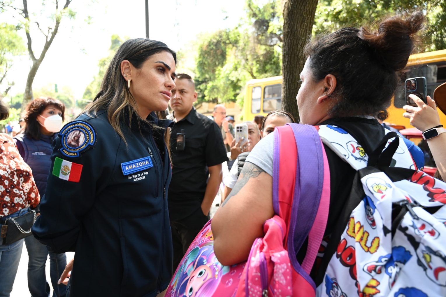 Acompañada por personal de las direcciones Generales de Gobierno, Jurídica y de Servicios Legales, así como elementos de la Policía Auxiliar adscritos a la demarcación, la alcaldesa arribó al sitio para dialogar con los comerciantes y lograr el retiro de los negocios semifijos.