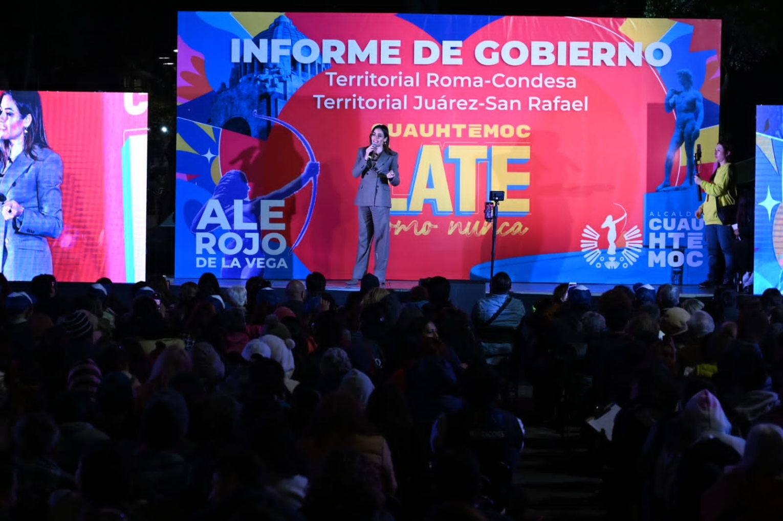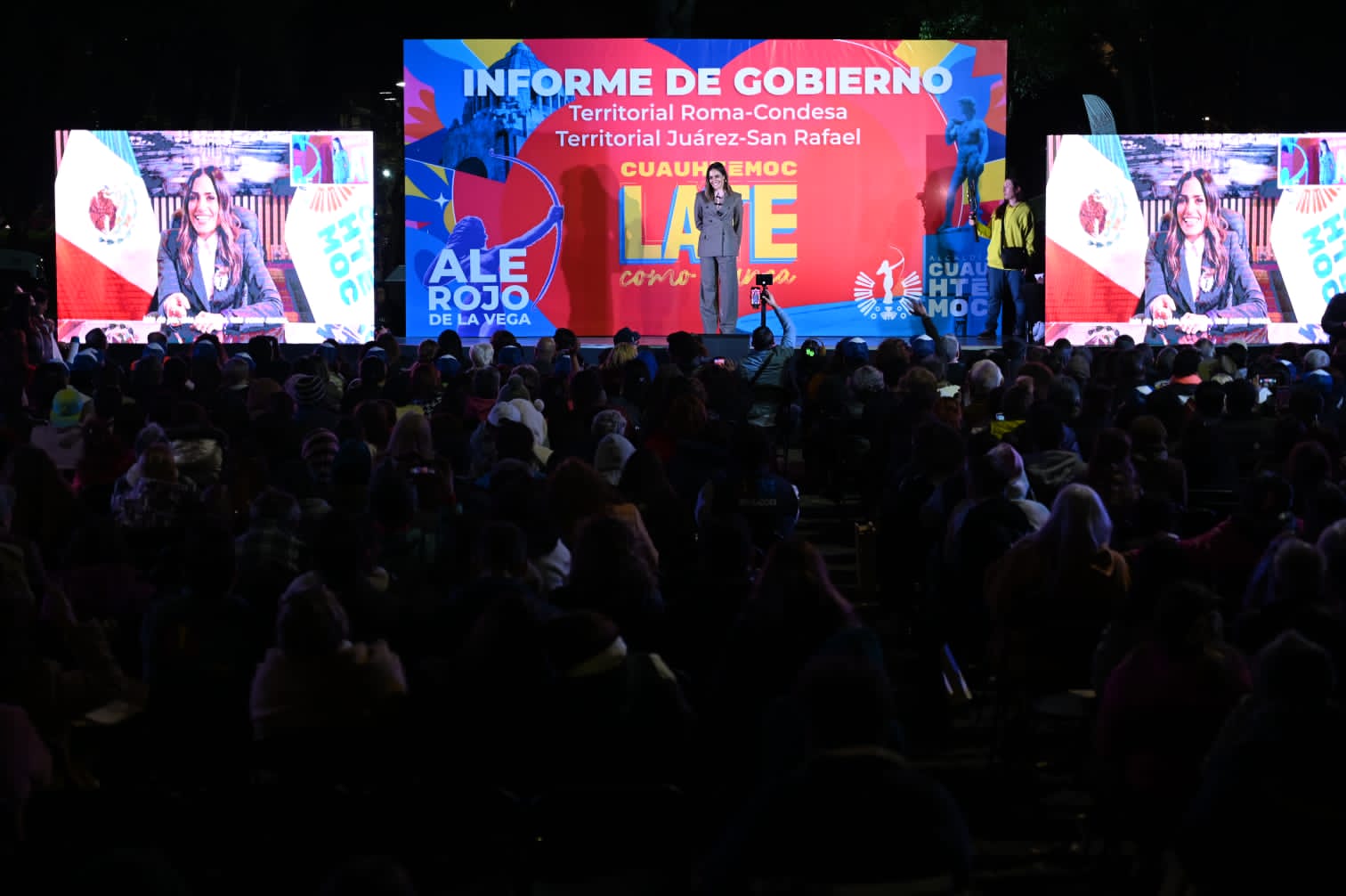 La alcaldesa Alessandra Rojo de la Vega encabezó la segunda jornada de su gira de rendición de cuentas “Cuauhtémoc late como nunca” en la Plaza Río de Janeiro, donde se reunió con más de mil 500 vecinas y vecinos de las Coordinaciones Territoriales Roma–Condesa y Juárez–San Rafael.