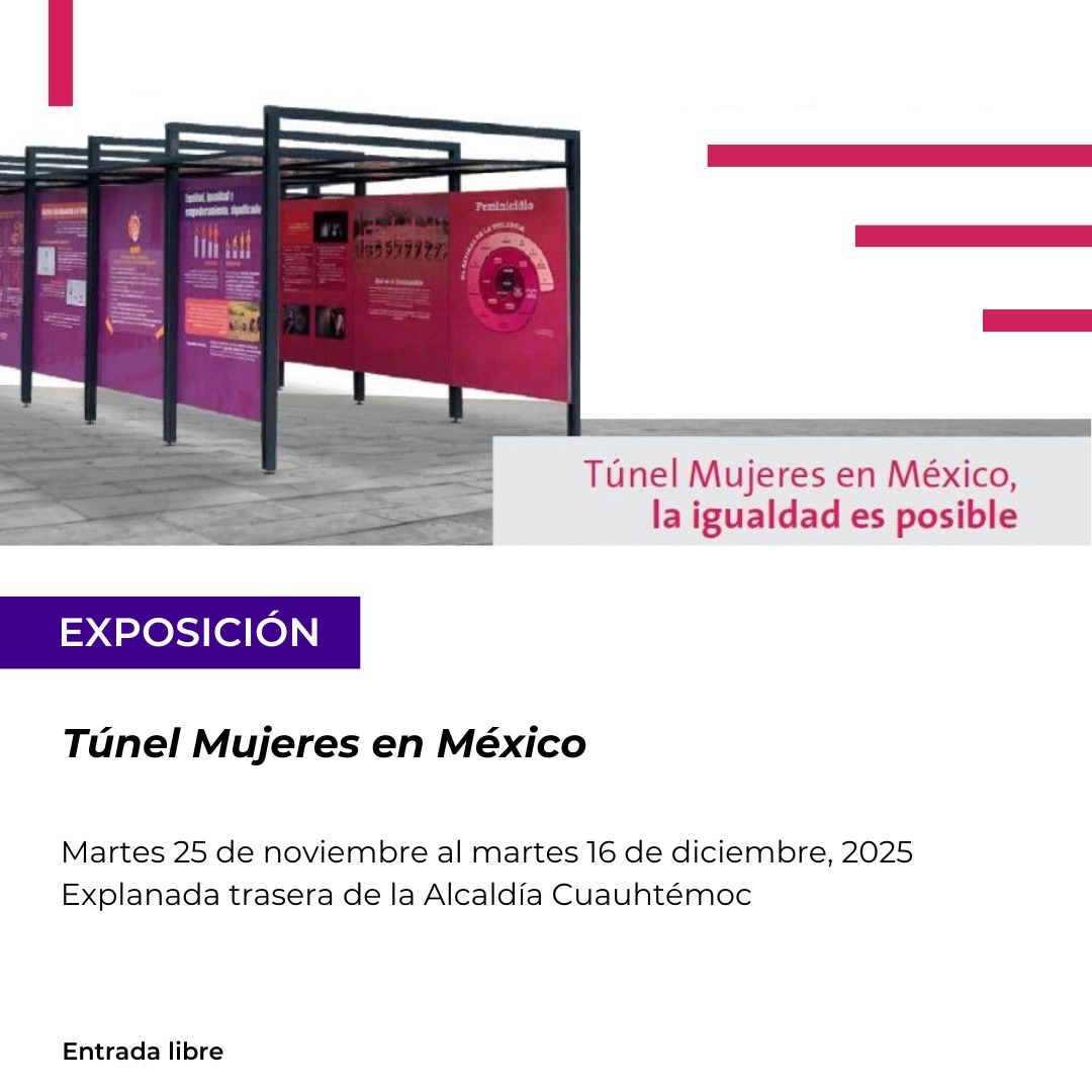Las casas de cultura de la Alcaldía mantienen además diversas exposiciones abiertas al público. En Santa María la Ribera continúa Ediciones Salvajes hasta el 12 de diciembre, mientras que en la explanada trasera de la Alcaldía se presenta el Túnel Mujeres en México, del Museo Memoria y Tolerancia, disponible hasta el 16 de diciembre.