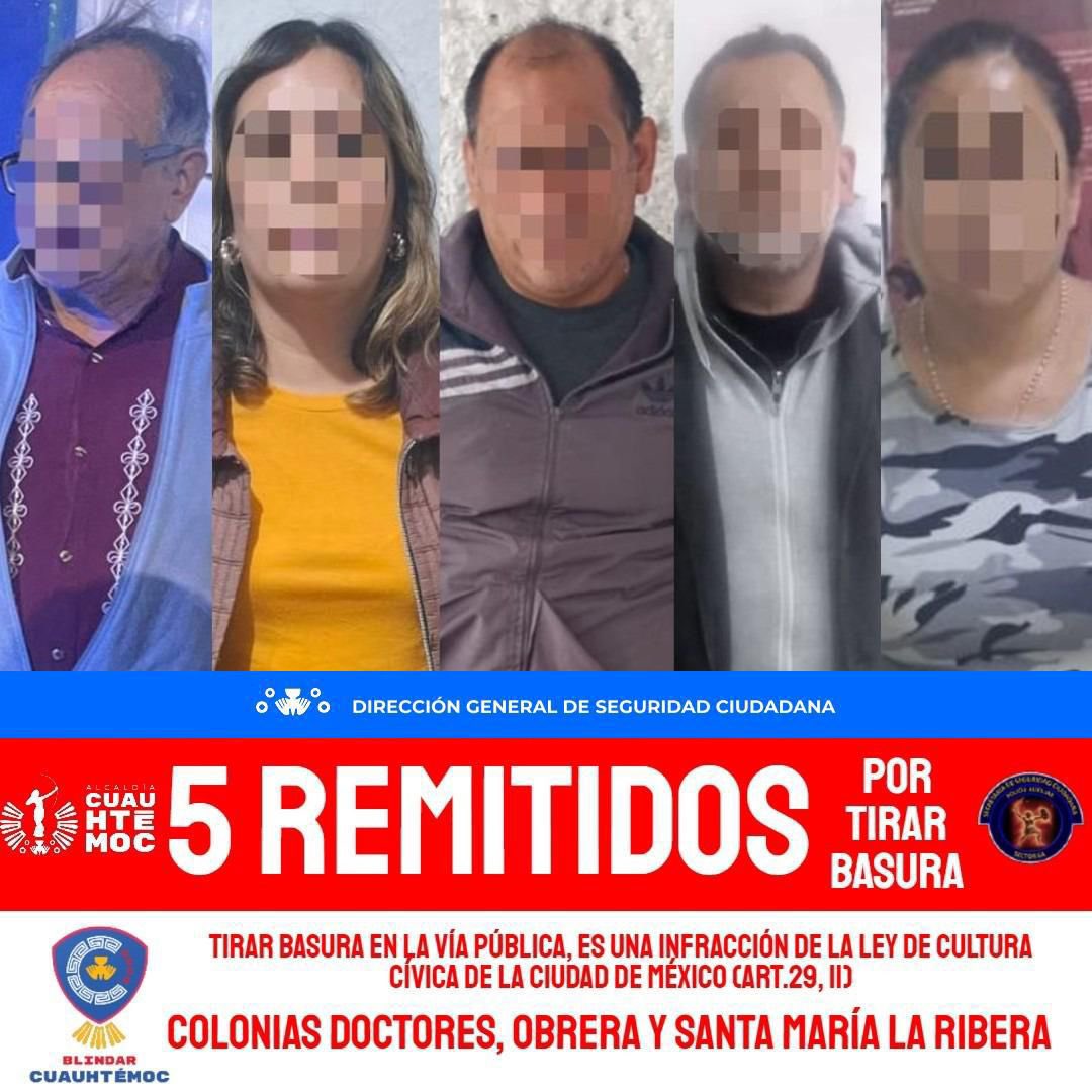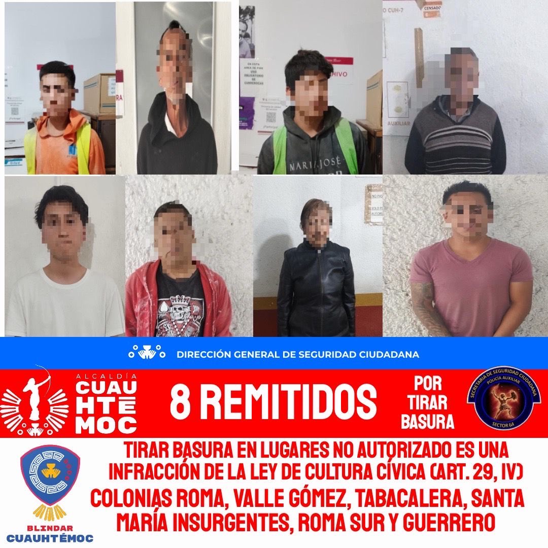Entre el 1 de enero de 2025 y 26 de diciembre de 2025, 246 personas fueron detenidas por elementos de la Policía Auxiliar (PA) adscritos a la Alcaldía Cuauhtémoc por tirar basura en la vía pública y por ello fueron remitidas al Juzgado Cívico.
