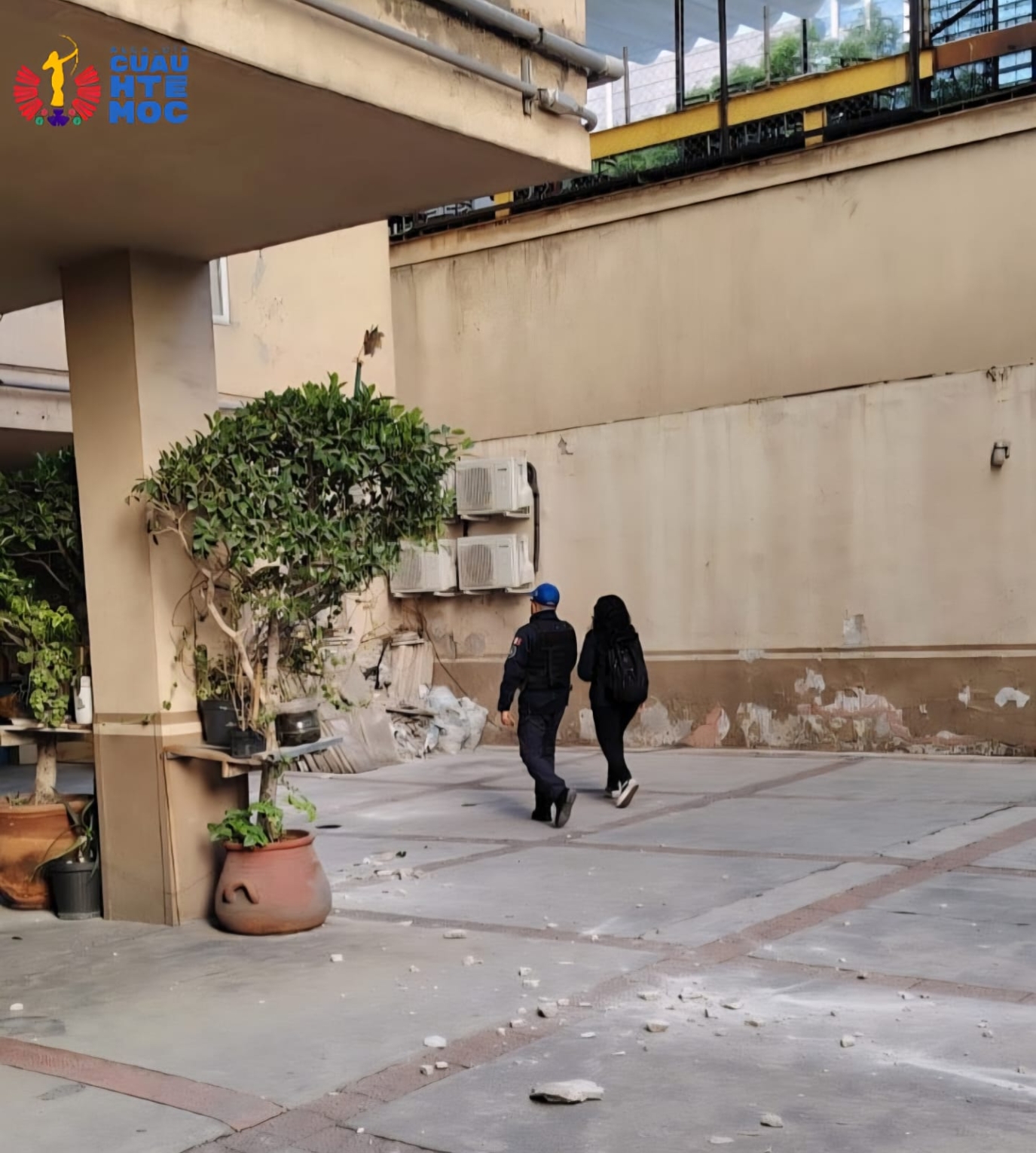 Al continuar con las labores de supervisión ordenas por la alcaldesa Alessandra Rojo de la Vega tras el sismo magnitud 6.5 registrado este viernes, la Alcaldía Cuauhtémoc informa que personal de Protección Civil y de la Policía Auxiliar adscrita a la demarcación, realizaron un acordonamiento para mitigar el riesgo ante el desprendimiento de fachada en un edificio ubicado en el cruce Paseo de la Reforma y Río Guadiana, colonia Cuauhtémoc.