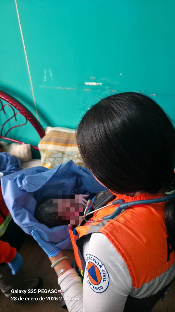 Los hechos se registraron la tarde este miércoles, cuando la base de Protección Civil recibió la solicitud de apoyo ante una mujer en labor de parto. A su arribo, los elementos localizaron a una mujer de 28 años que ya había dado a luz, con el recién nacido en brazos.