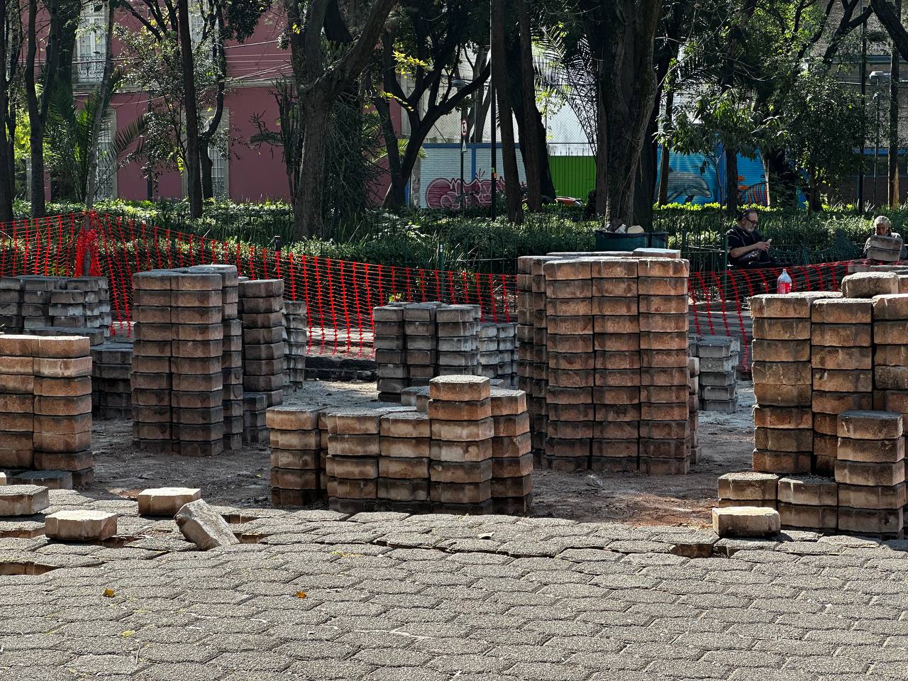 En la Plaza Río de Janeiro se refuerza el perímetro de la fuente, y en vialidades como Cedro, Clavel y Dr. Enrique González Martínez se ejecutan trabajos de repavimentación que mejoran la conectividad interna de la demarcación.