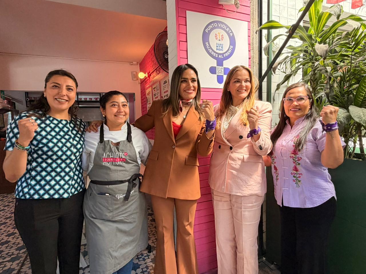 Posteriormente, se trasladaron a bordo del Tranvía Turístico de Cuauhtémoc al restaurante Axiote, donde se instaló un Punto Violeta, como parte de las acciones para brindar apoyo a mujeres en situación de riesgo. Este espacio se suma a los más de 400 Puntos Violeta que ya funcionan en la alcaldía.